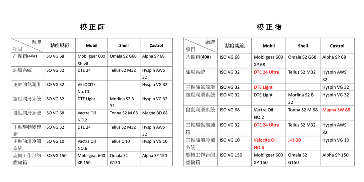 隆福行為Mobil美孚品牌台灣區工業潤滑油總經銷商,擁有服務過上百間工業客戶之豐富經驗。為了因應設備製造商在說明手冊中油品相關資訊設定上的困擾,隆福行特別提供「設備商手冊油品資訊校正服務」。透過專業團隊的分析及建議,讓設備商可精準地找出適合自身產品設備的油品資訊,確保客戶未來在進行設備操作時能依照正確的手冊油品資訊執行動作,降低後續設備問題發生率、維持產能穩定、並避免可能產生之龐大維修費用支出。